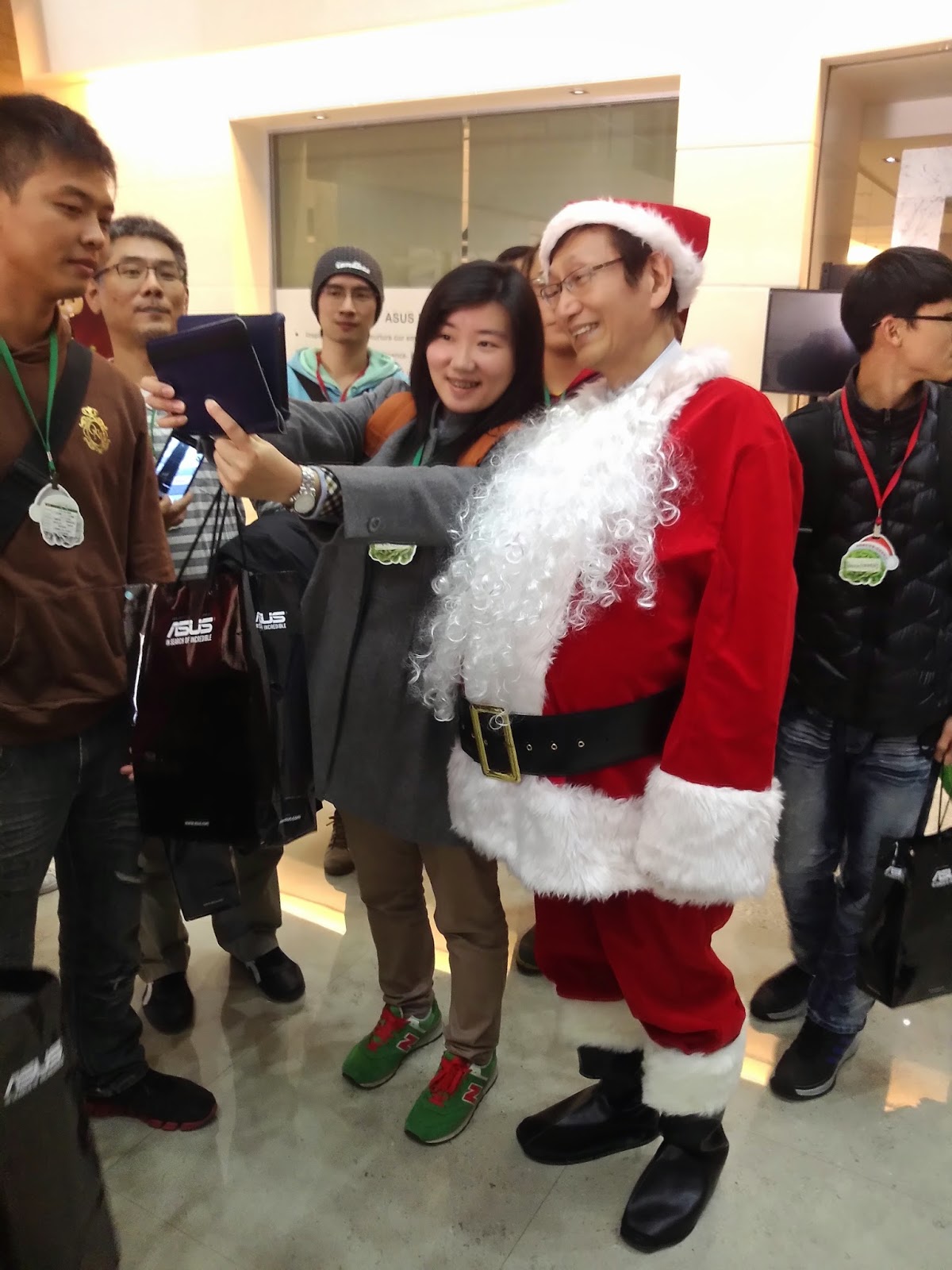 ▼華碩施董事長扮演今天的耶誕老公公,發給每人一隻zenfone 5。